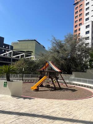 Tiene áreas comunes para salón de eventos, gimnasio, juegos infantiles, pista para trote o caminata, alberca para practicar nado.