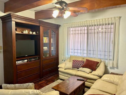 Estancia familiar, tiene tres Rec. c/u con su baño, la principal y una secundaria están en la Planta Baja y la tercera está en el segundo piso.
