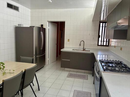 La casa se renta amueblada, tiene un diseño muy agradable, espacios amplios y techos altos.